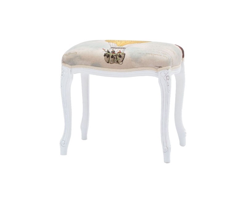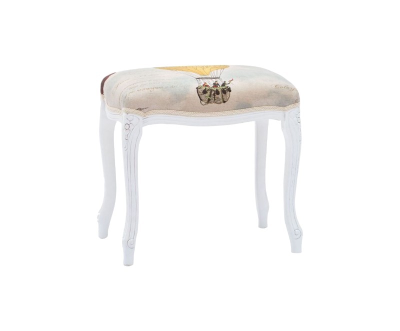 Pouff imbottito tessuto mongolfiera legno shabby bianco 43x33x43