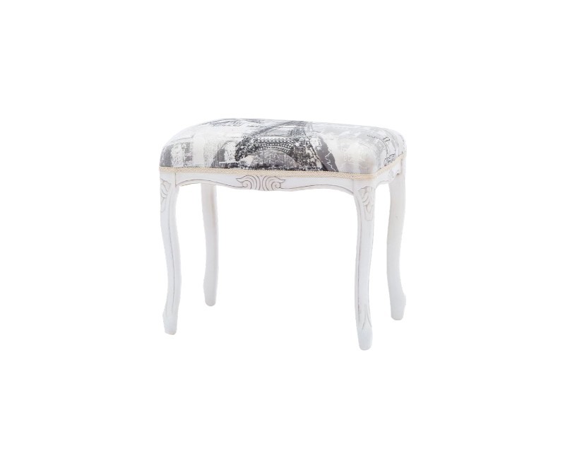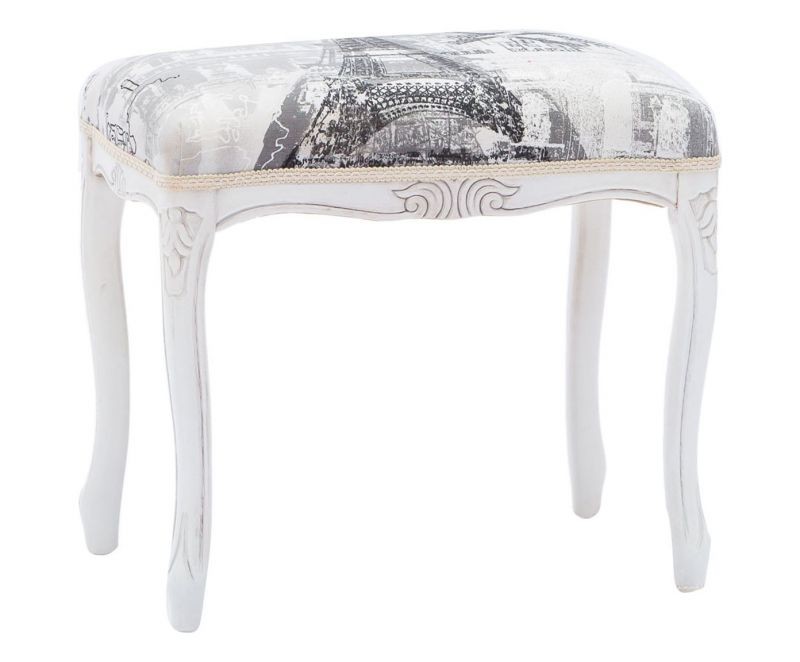 Pouff imbottito tessuto parigi legno shabby bianco 43x33x43