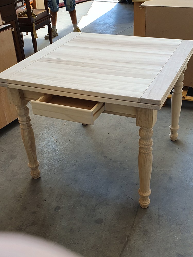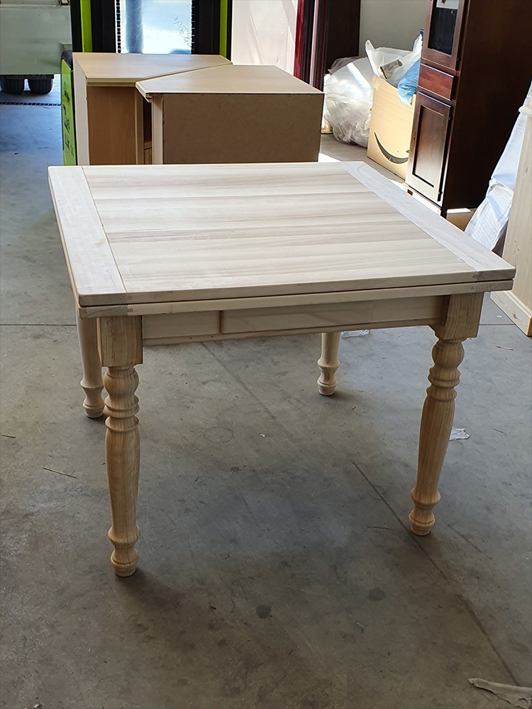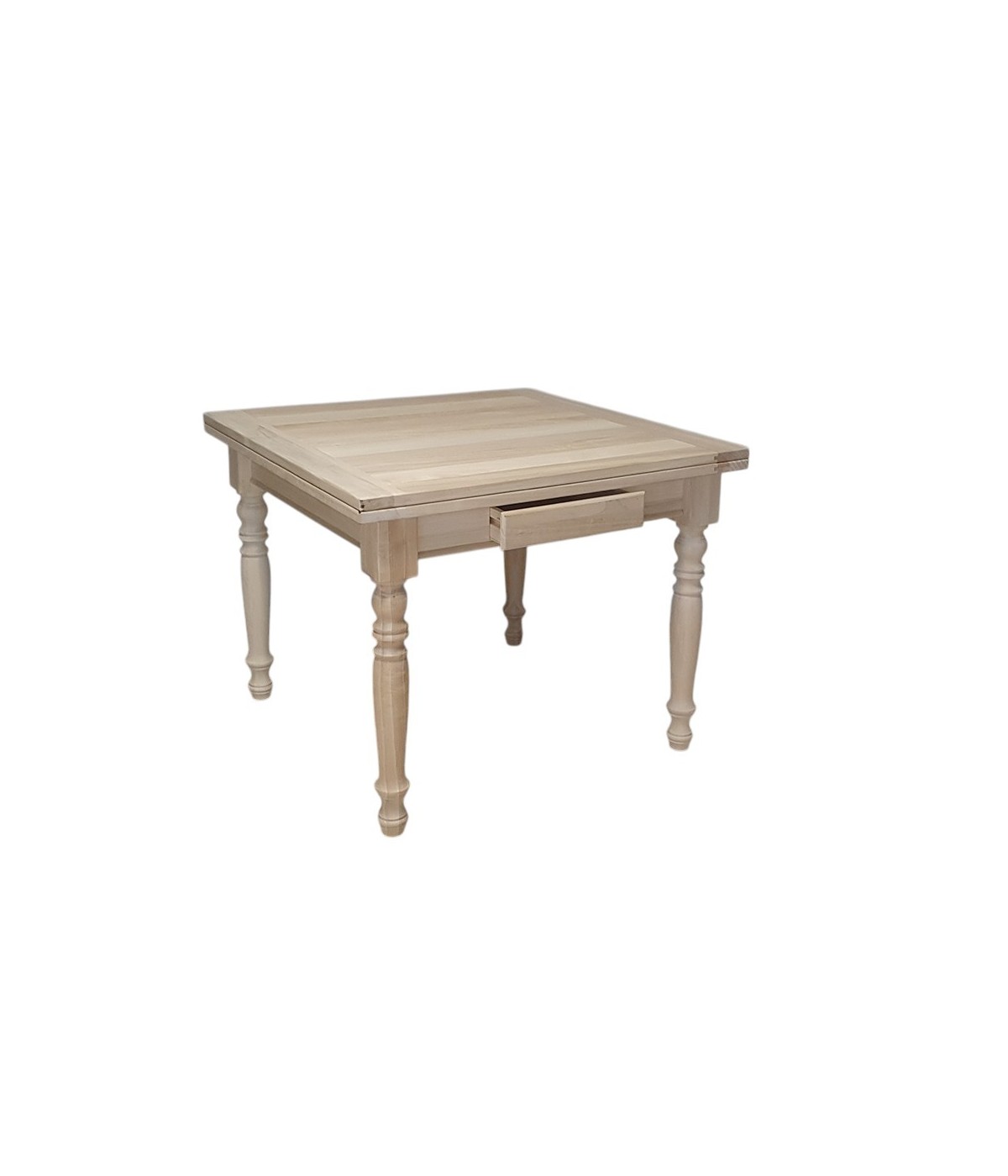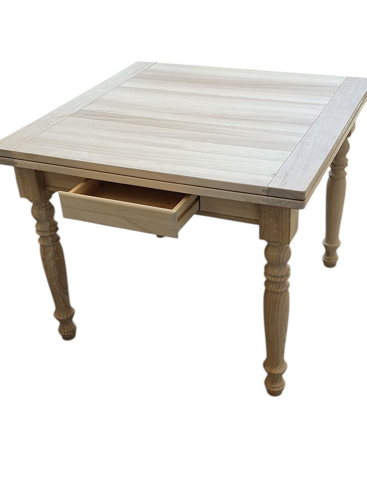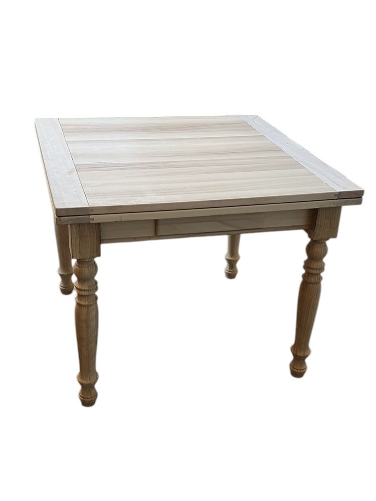 Tavolo quadrato Allungabile a libro In Legno massello grezzo 100x100x80