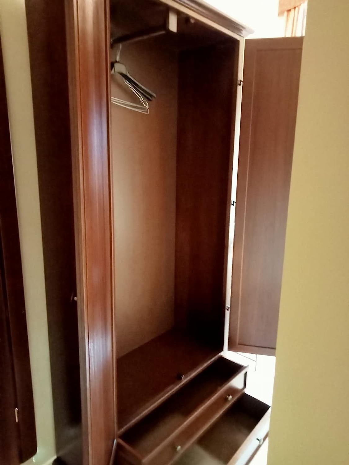 Armadio arte povera con un palo appendiabiti per riporre i tuoi indumenti , sfruttando anche i due cassetti per riporre sciarpe , guanti e accessori. Ante a telaio con cappello dritto che rendono elegante e raffinato sotto tutti i punti di vista questa tipologia di armadio . Ideale da posizionare in camera o all'ingresso della casa