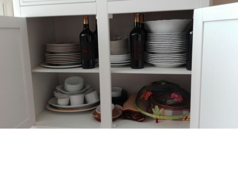 Credenza in stile shabby adatta per riporre stoviglie, strofinacci e tovaglie. Realizzata con uno stile classico per aggiungere un tocco di classe retrò nella zona giorno o in taverna. Elemento d' arredo funzionale e spazioso che non passerà inosservato dagli ospiti all' interno della casa .