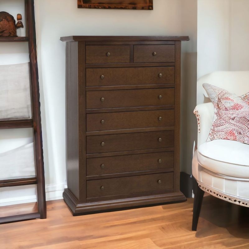 Cassettiera dalle linee semplici e pulite costruita in legno con zoccolo a terra. Cassettiera dotata di sei cassetti e due cassettini per riporre all'occorrenza biancheria intima e oggetti. Trovano facilmente posto nella zona notte proteggendo con i suoi cassetti il suo contenuto all'interno. Unica nel suo genere grazie alle sue linee eleganti dando un tocco a un' atmosfera dallo stile classico.