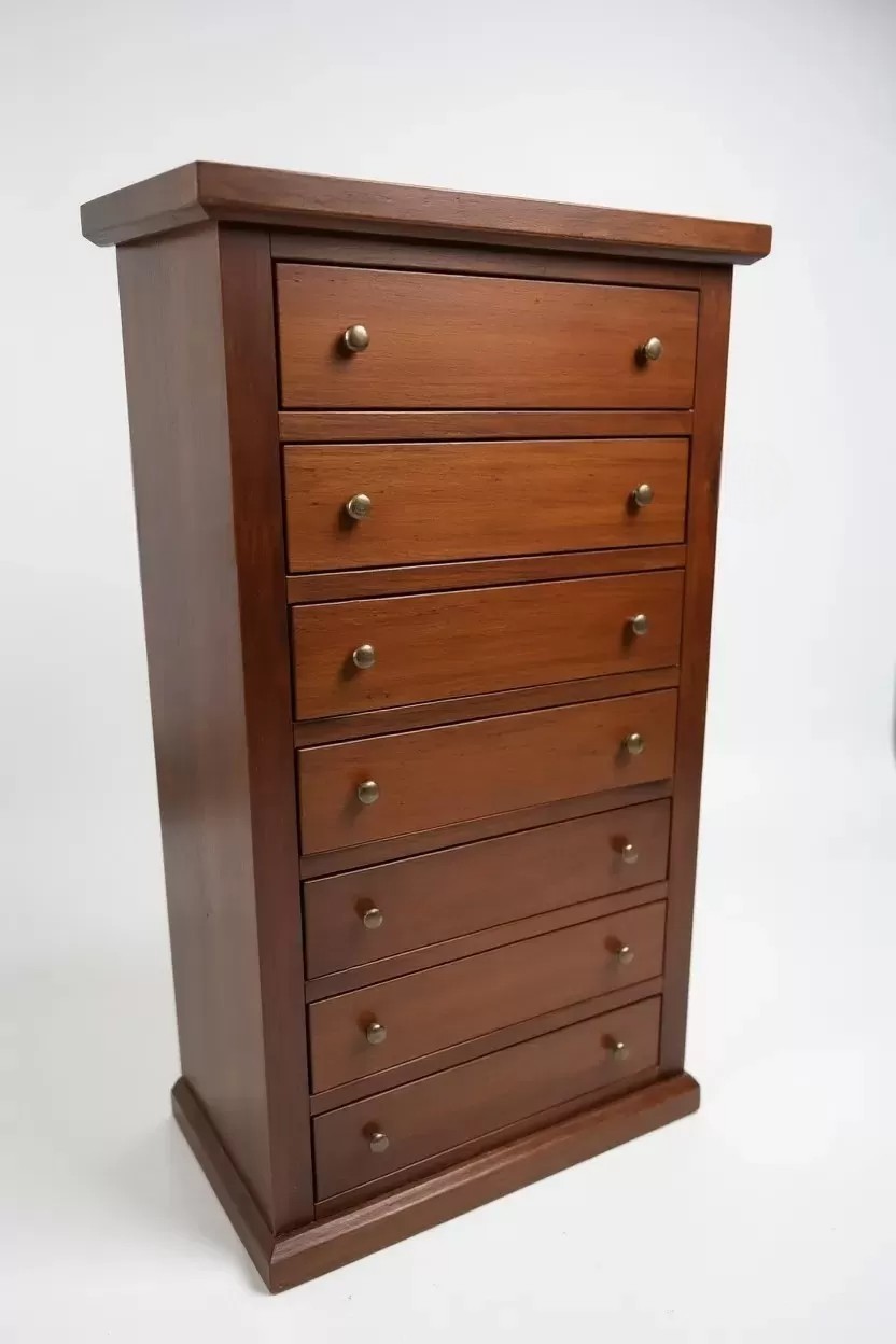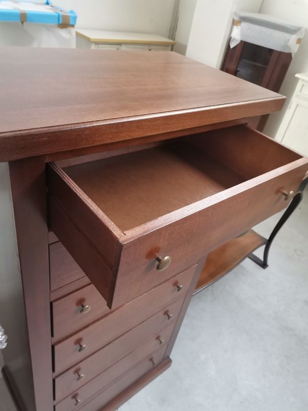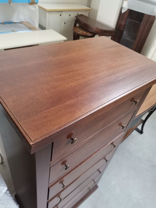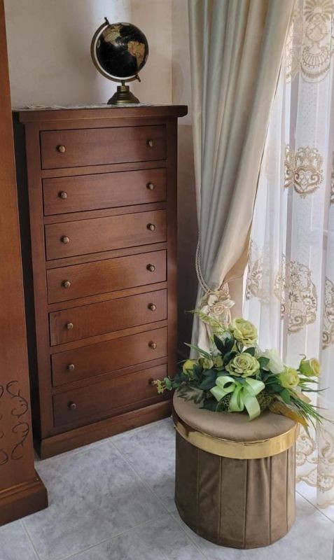 Cassettiera 7 cassetti in legno arte povera tinta noce 70x40X120