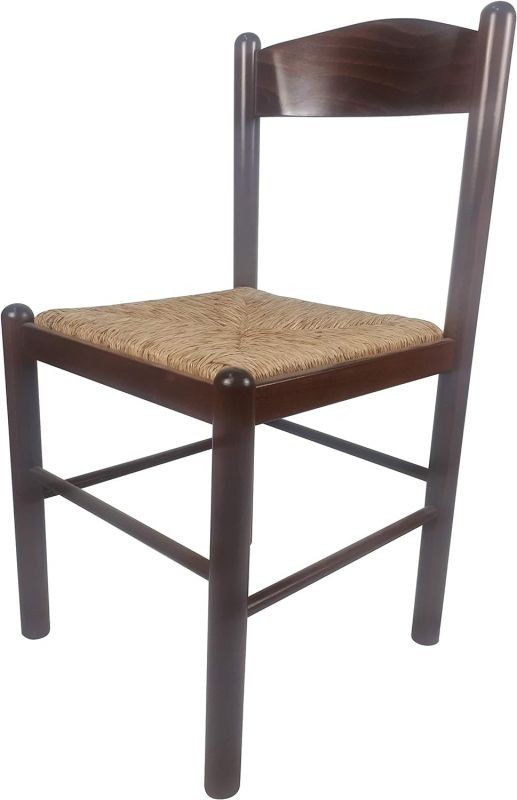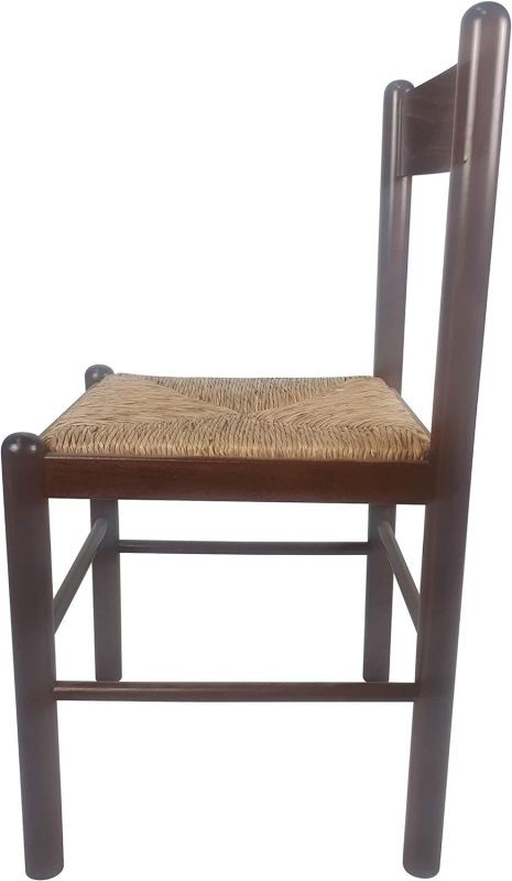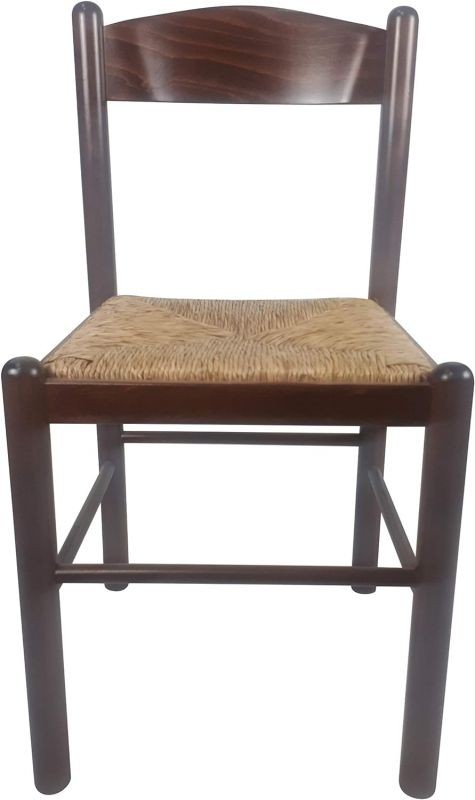 Set 2 sedie arte povera legno tinta noce seduta paglia 43x43x83