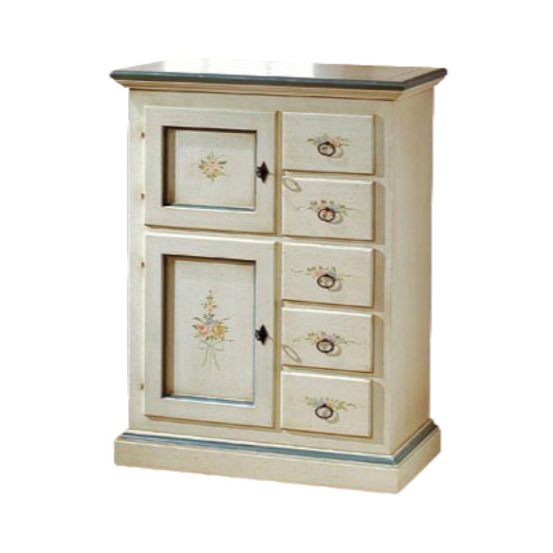 Credenza dispensa 2 porte 5 cassetti Legno grezzo 75x40x100 (5000)