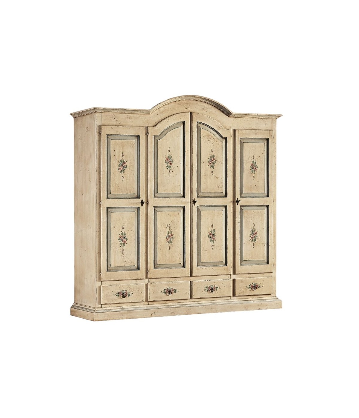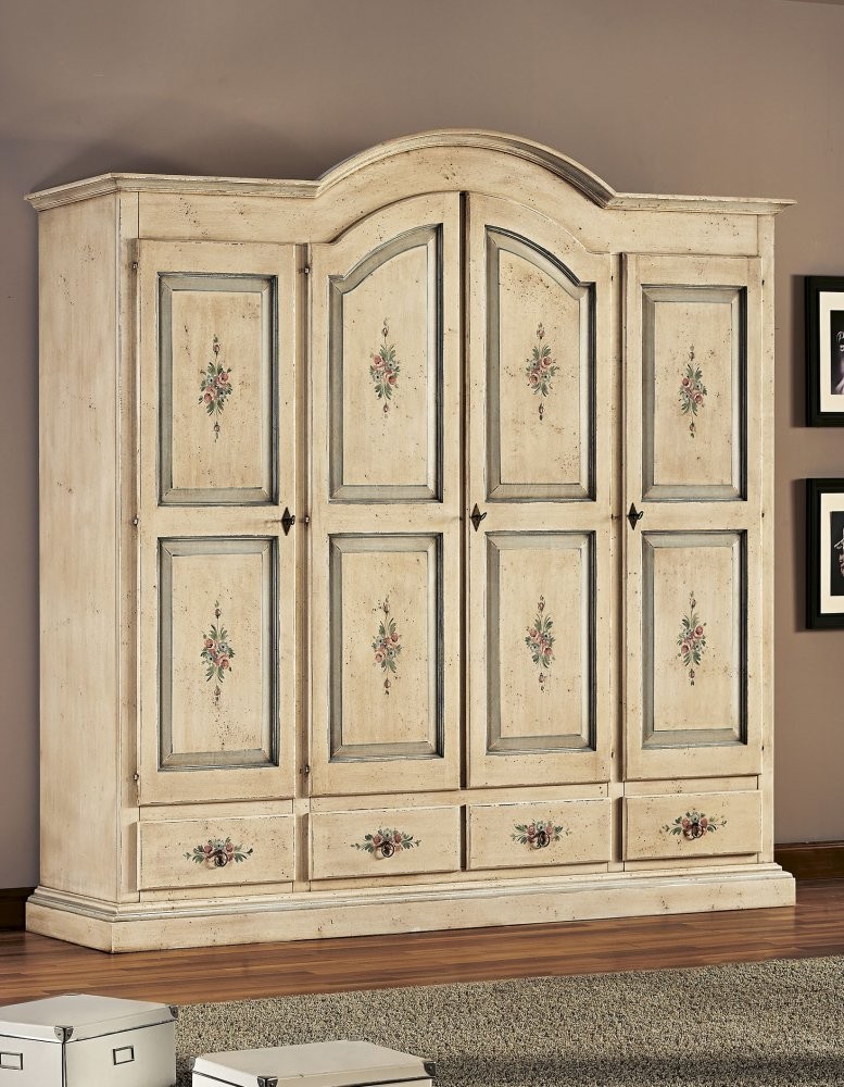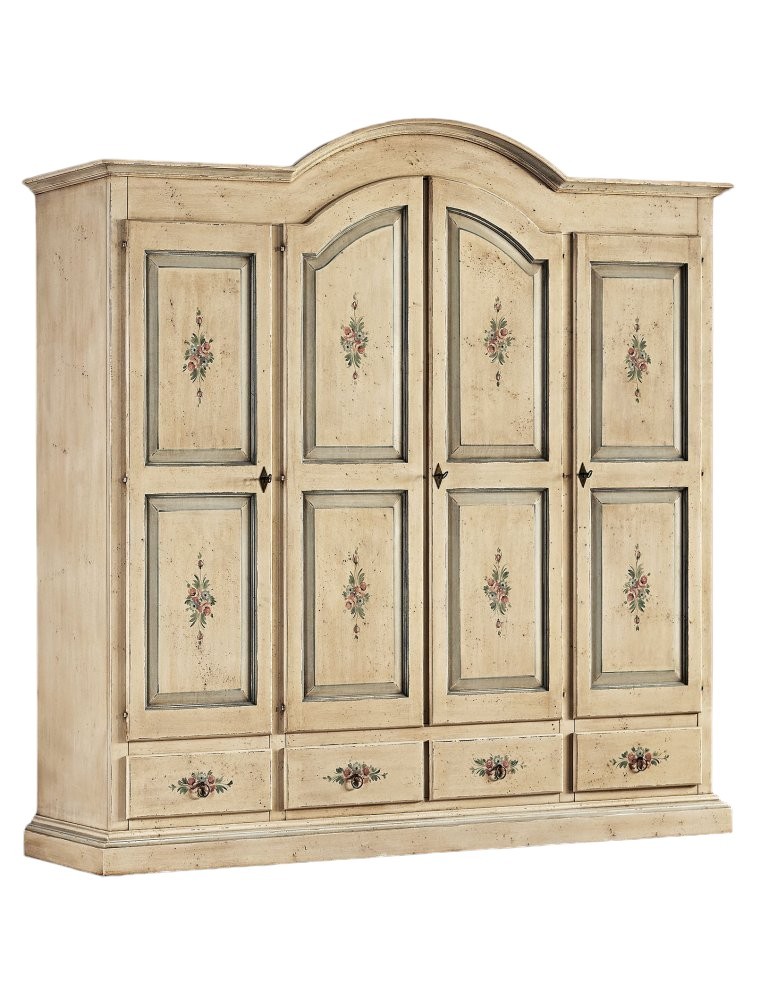 Armadio classico 4 porte avorio anticato filo azzurro legno 234X60X230 (1428)