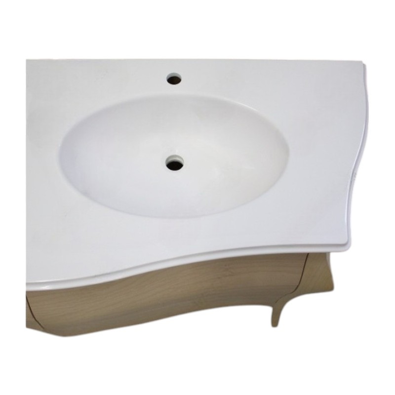 Mobile bagno 6 cassetti bombato con doppio lavello legno grezzo 162x58x83