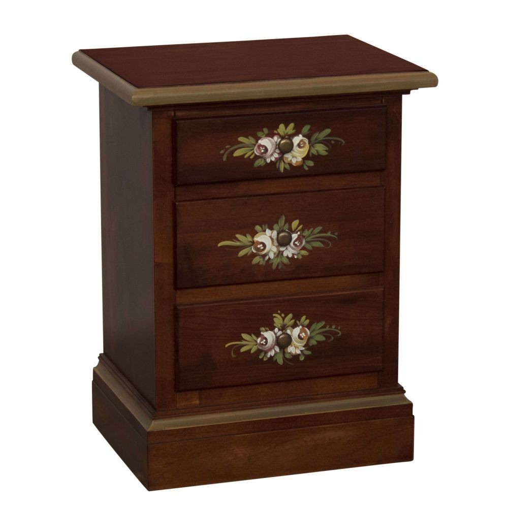 Comodino arte povera costruito in legno rendendo il mobile solido e allo stesso tempo elegante. Dotato di 3 cassetti con zoccolo a terra, Ideale per la zona giorno, per l'entrata per riporre il telefono o come comodino per la zona notte. Unica nel suo genere con i suoi decori floreali dando un tocco a un' atmosfera dallo stile d'altri tempi .