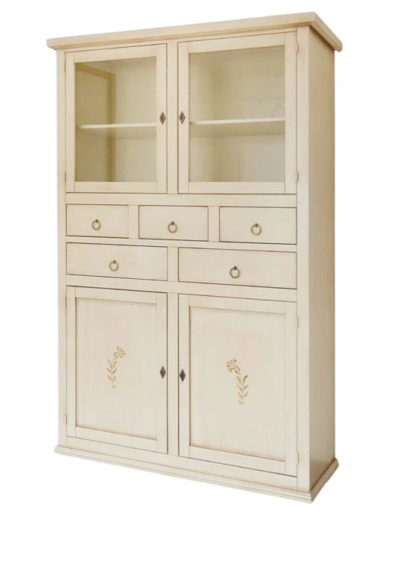 Dispensa 4 porte 5 cassetti legno avorio anticato decori shabby 120x41x187