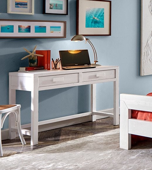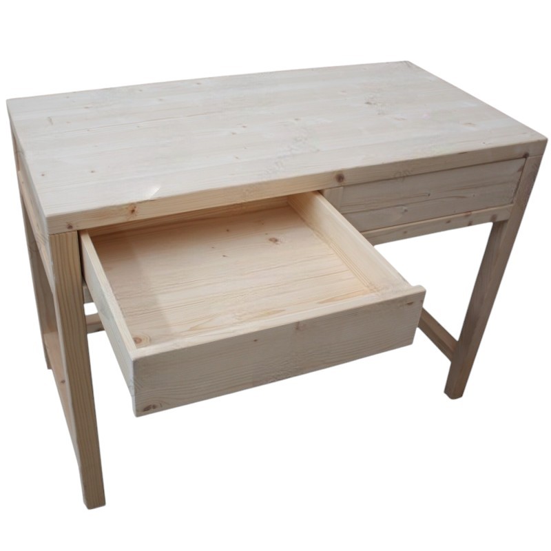SCRIVANIA 2 CASSETTI IN LEGNO MASSELLO ABETE GREZZO L.110 P.55 H.80