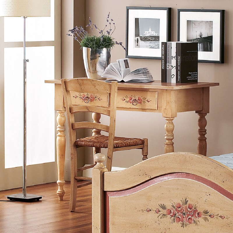 Scrivania arte povera 2 cassetti legno shabby avorio rosso 105x55x80 (1426)
