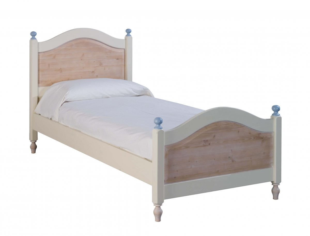 LETTO SINGOLO ARTE POVERA LEGNO SHABBY AZZURRO E MIELE 98x212x111 (2229)