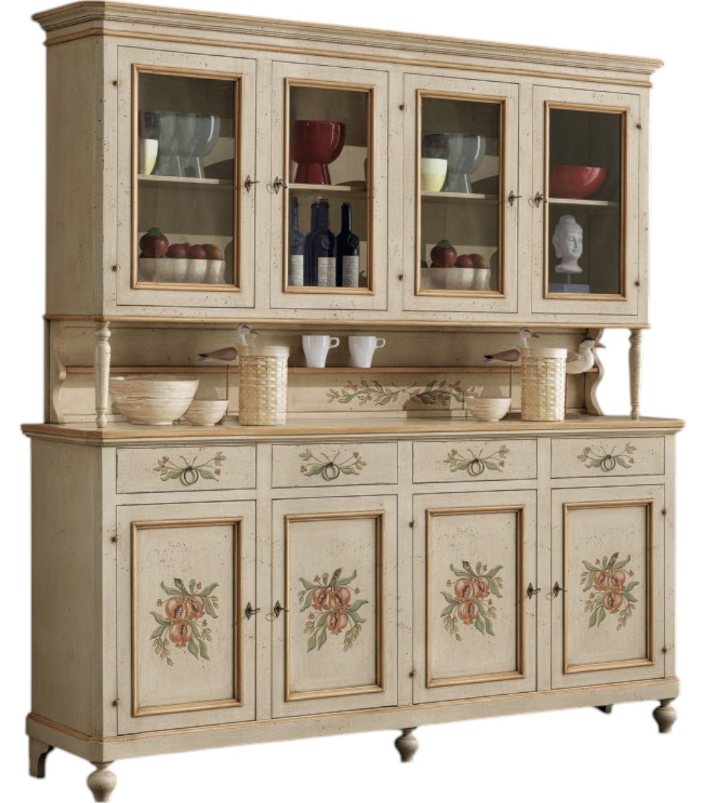 4 porte battenti sull'alzata con vetri trasparenti