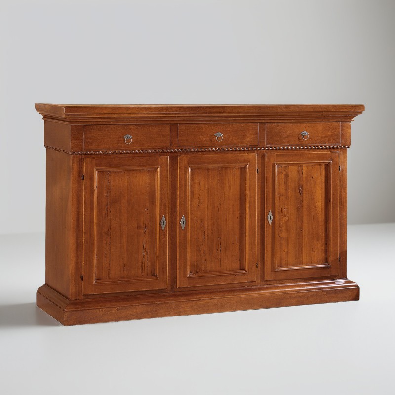 CREDENZA 3 PORTE IN LEGNO NOCE ARTE POVERA 190x50x111 (604)