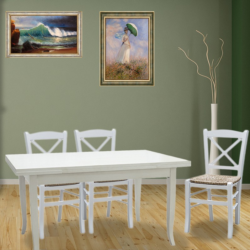• MOBILI 2G - Set tavolo rettangolare shabby 100x70 120x80 140x80 160x85 allungabile con 4/6 sedie legno seduta paglia