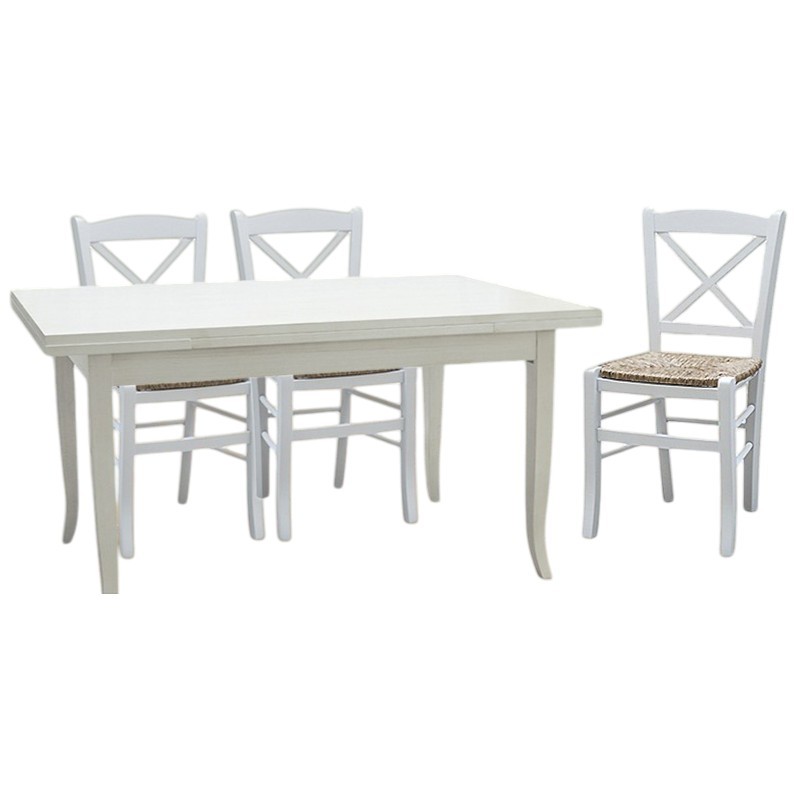 MOBILI 2G - Set tavolo rettangolare shabby 100x70 120x80 140x80 160x85 allungabile con 4/6 sedie legno seduta paglia