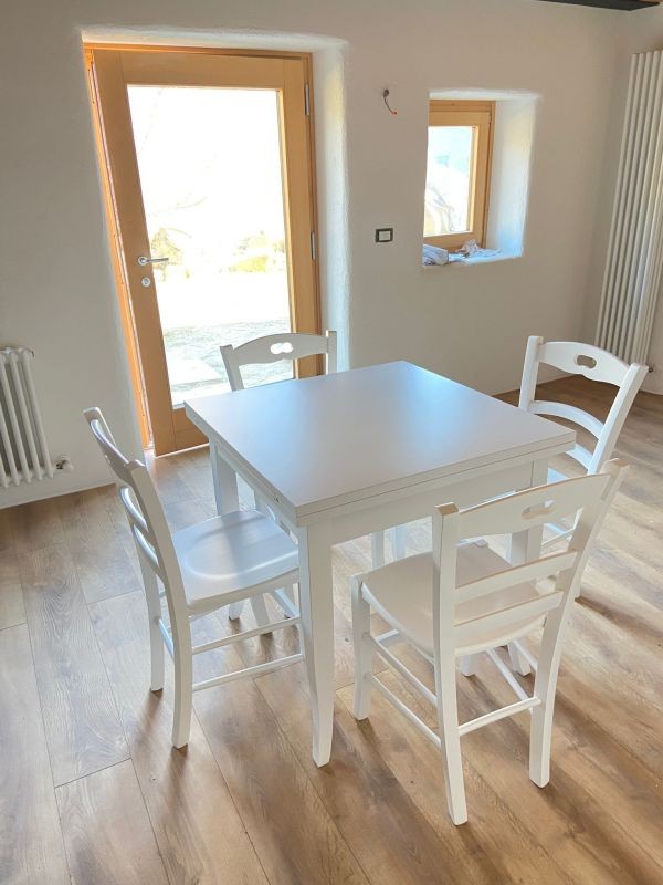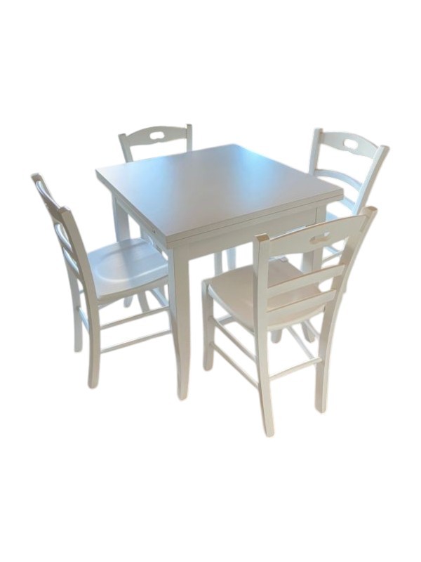 Set tavolo quadrato bianco 80x80 90x90 100x00 allungabile con 4/6 sedie legno seduta legno