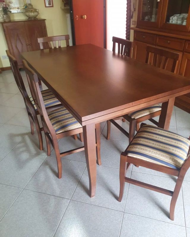 Set tavolo rettangolare 100x70 120x80 140x80 160x85 allungabile con 4/6 sedie legno seduta imbottita