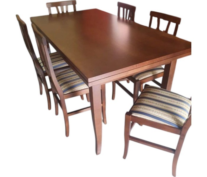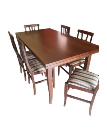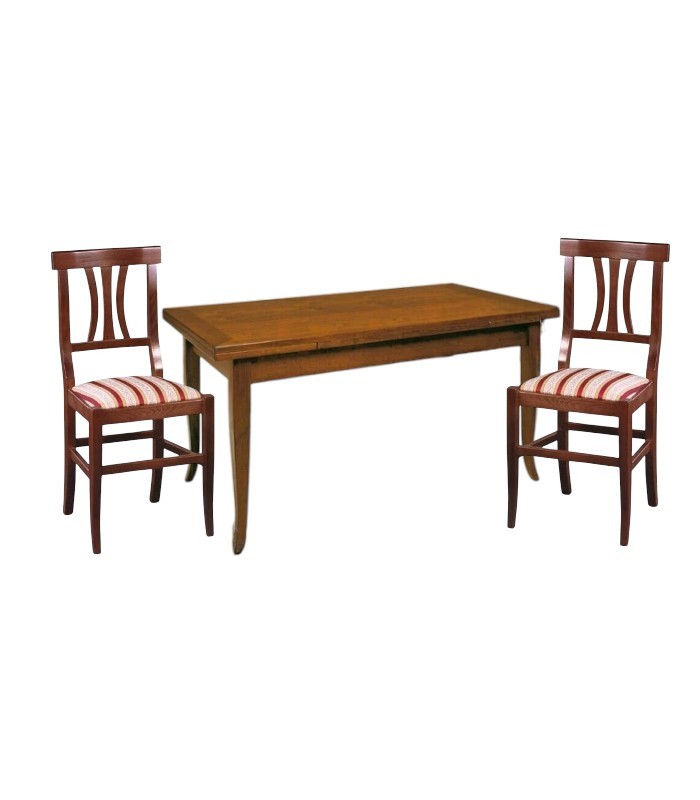 Tavolo costruito in legno massello di pioppo rendendo il mobile solido e robusto. Piano rettangolare con gambe a sciabola, dotato di due allunghe laterali da 40 cm allungabile con apertura laterale da entrambe i lati, detta anche ' apertura a tiro '. Le allunghe sono riposte sotto il piano pronte all' occorrenza per ospitare numerose persone. Ideale per la zona giorno o per la zona della taverna ospitando amici per il pranzo o per la cena.