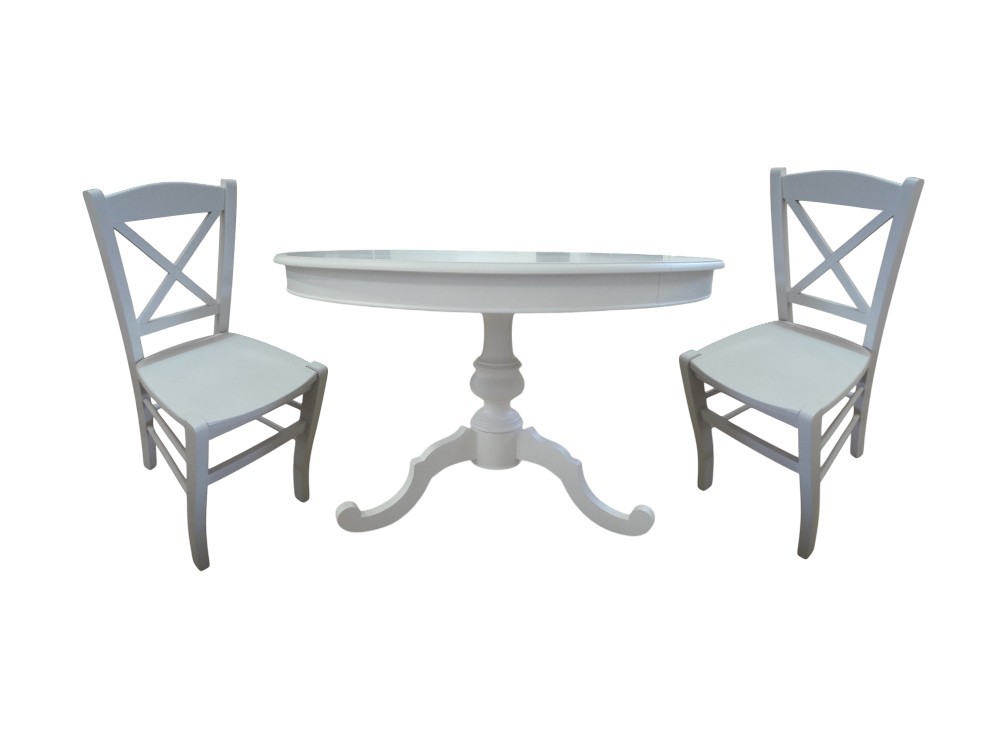 Set tavolo rotondo bianco 100x100 120X120 con 4 sedie legno seduta legno