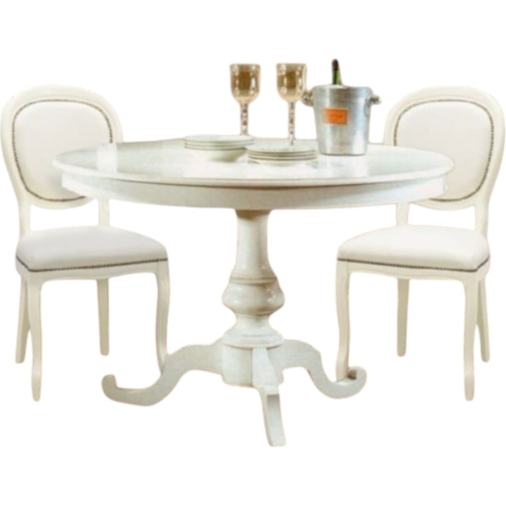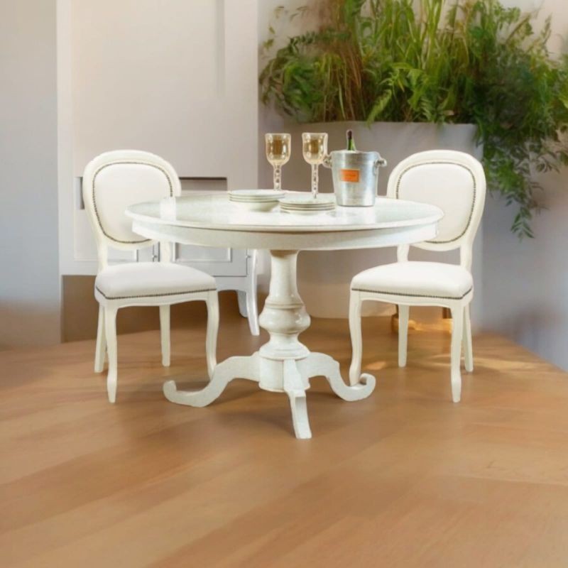 Set tavolo rotondo bianco 100x100 120X120 con 4 sedie imbottite ecopelle bianca