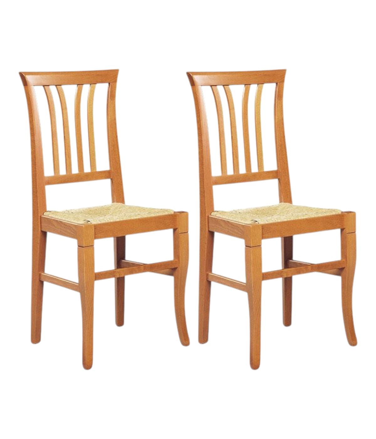 Set 2 sedie classiche legno tinta miele seduta paglia/legno 44x42x96