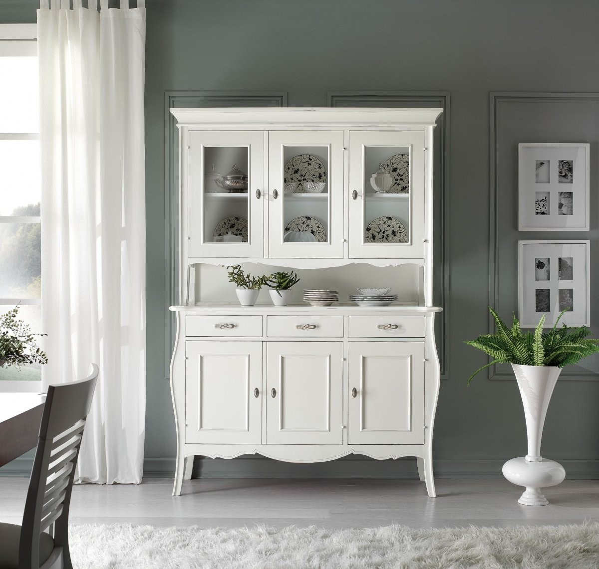 CRISTALLIERA SAGOMATA 3 ANTE 3 CASSETTI GREZZO 151x50x214 (3088+3089)
