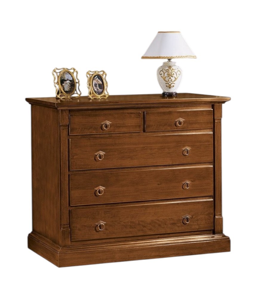 Cassettiera arte povera 5 Cassetti legno tinta noce 135x55x110 (415)