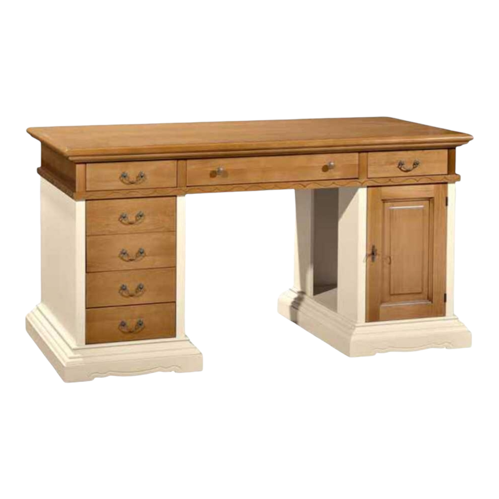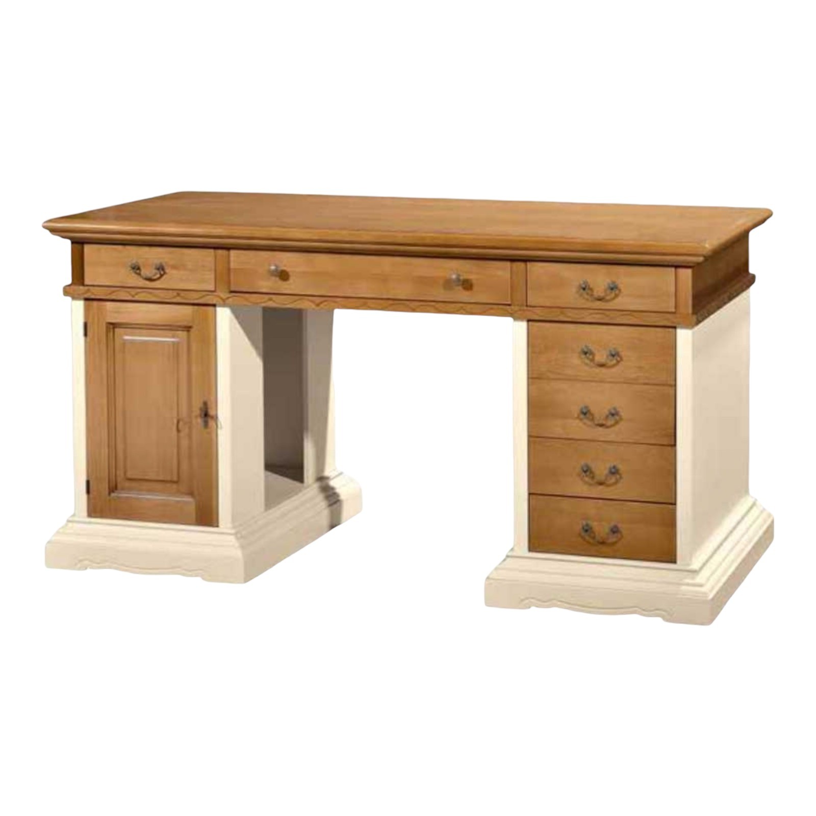 SCRIVANIA 7 CASSETTI LACCATO AVORIO E NOCE GRANO
