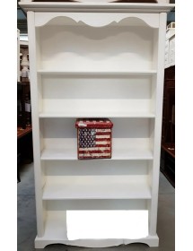 Libreria 5 ripiani con elegante cornice nella parte superiore. In legno di pioppo massello con parti in multistrato. Laccata interamente color bianco opaco.