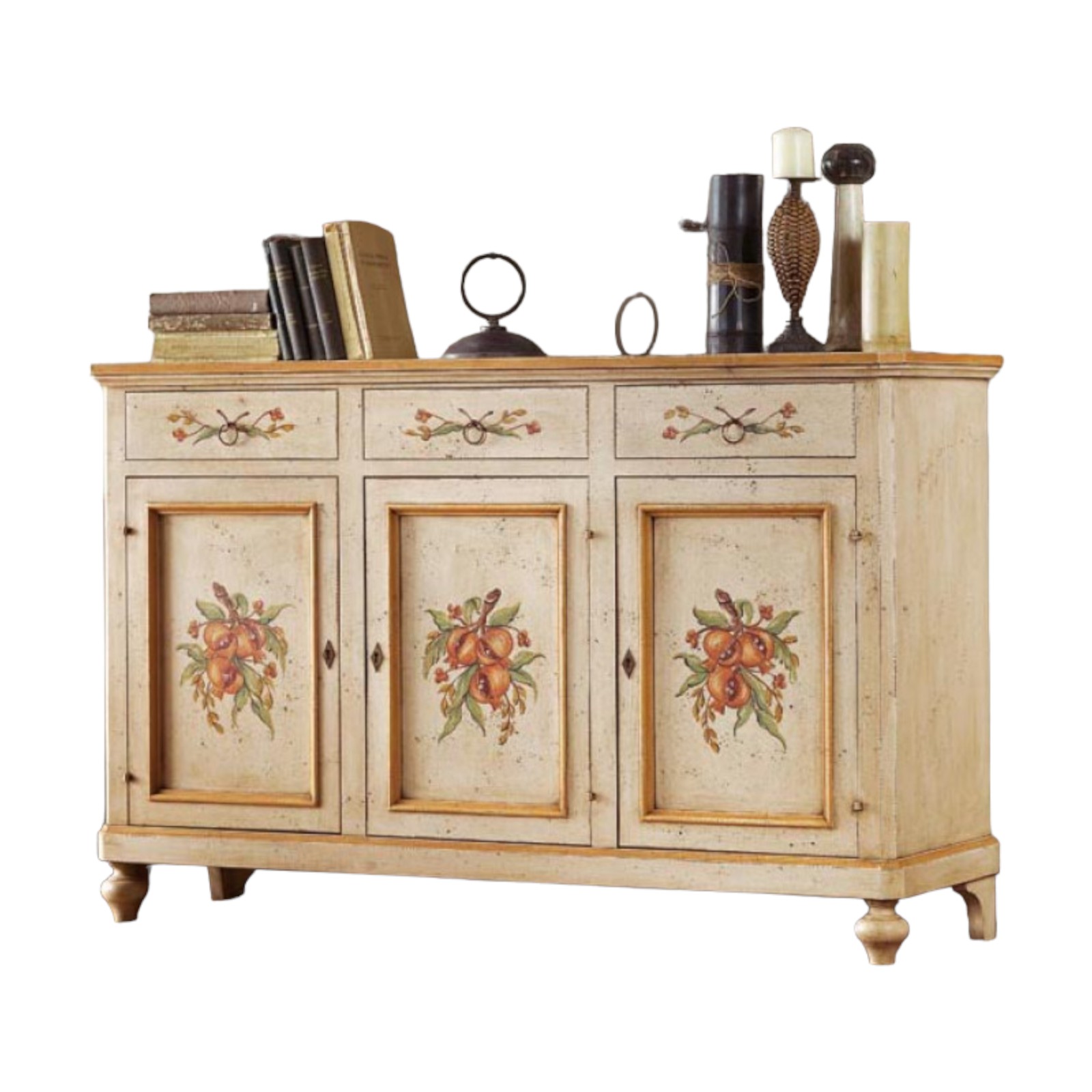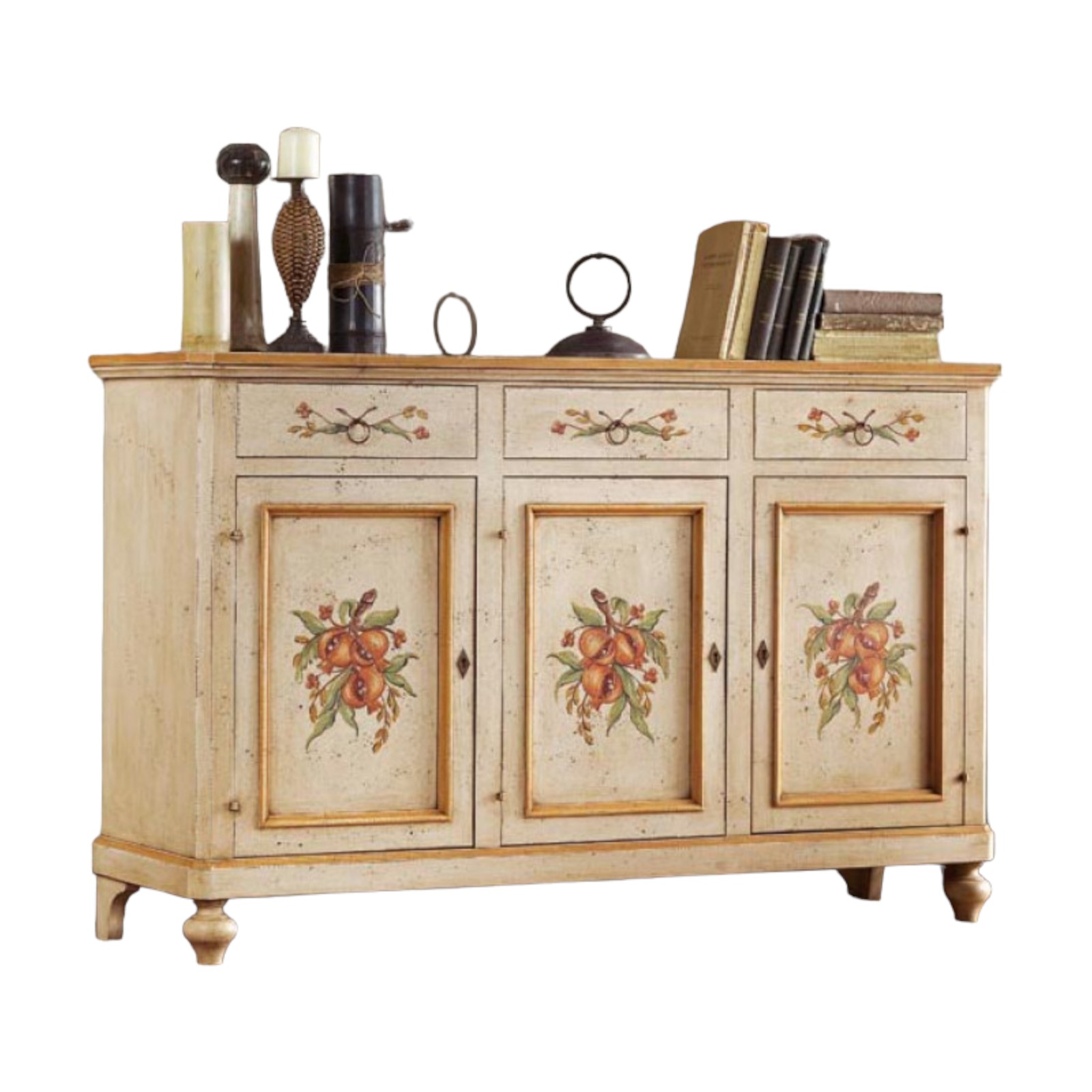 CREDENZA DIPINTA A MANO PROVENZALE 3 PORTE 3 CASSETTI 160x50X102