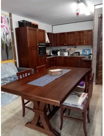 La finitura tinta noce dona un aspetto caldo e rustico, valorizzando l’ambiente con un tocco tradizionale. Il piano con becco di civetta rappresenta un dettaglio distintivo che esalta l’estetica classica del tavolo.