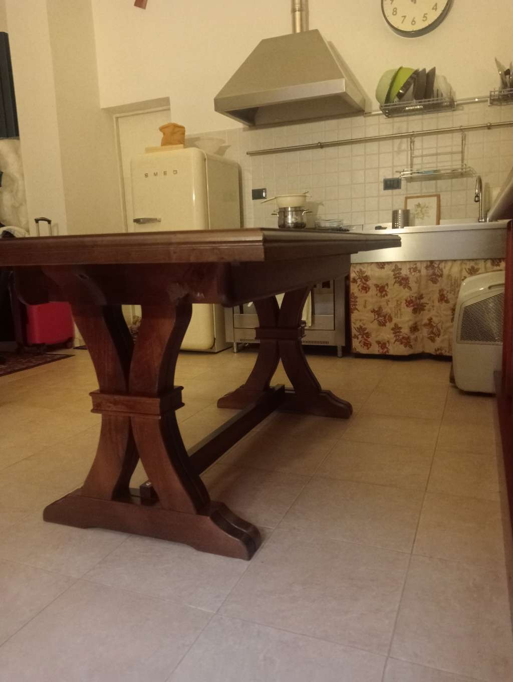 Tavolo fratino allungabile in legno tinta noce, stile arte povera, 180x100
