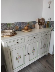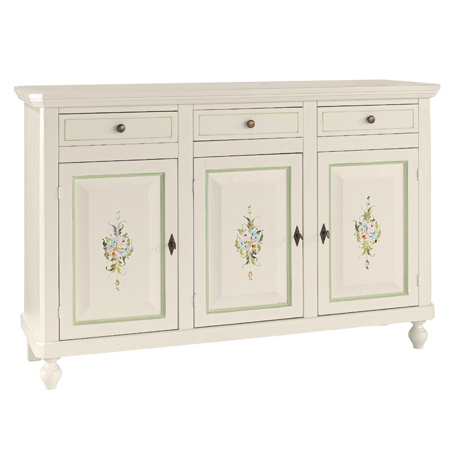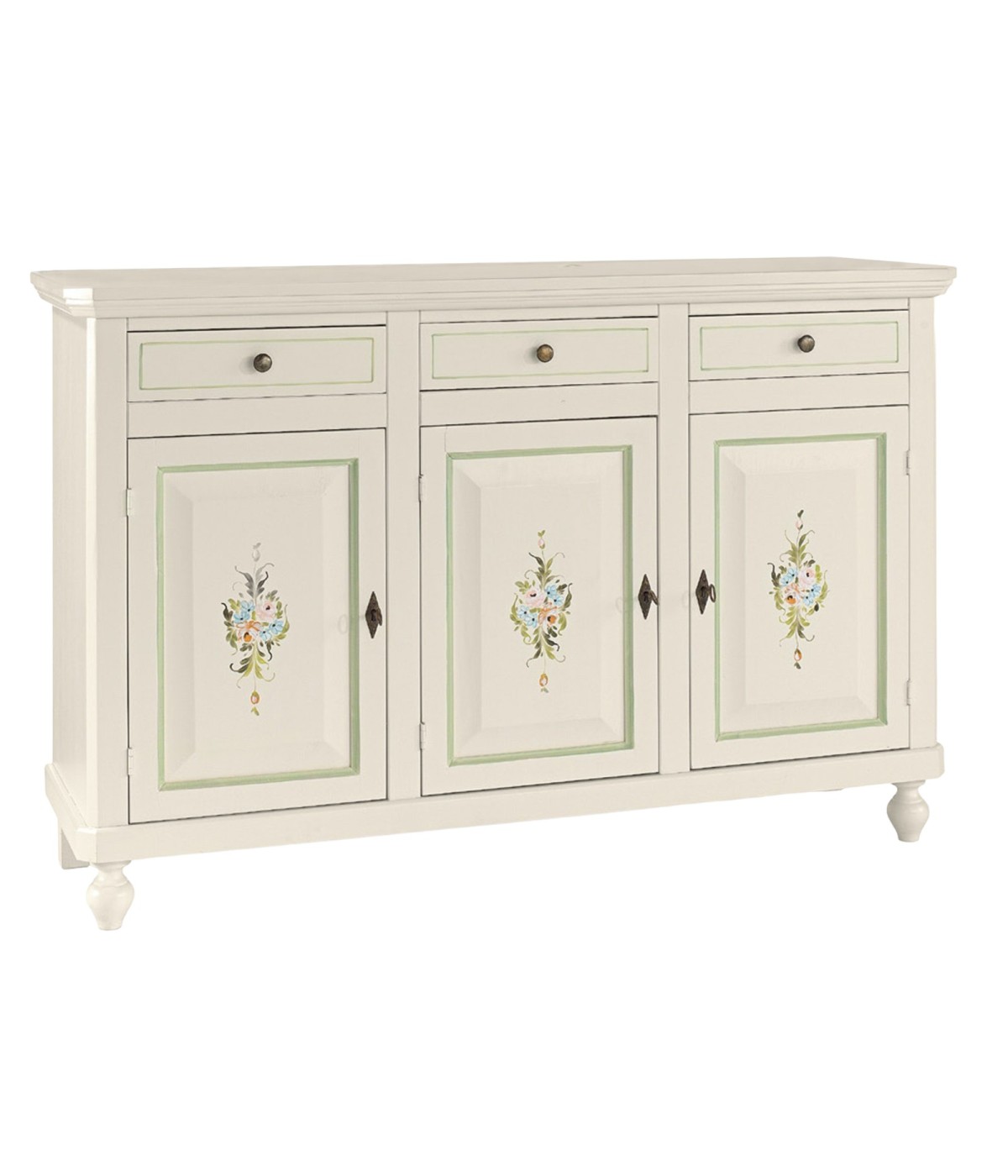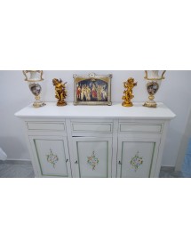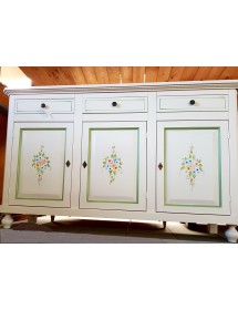 Credenza napoletana 3 ante + 3 cassetti Laccata bianco decorato (CON FIORI E PROFILI VERDI)
