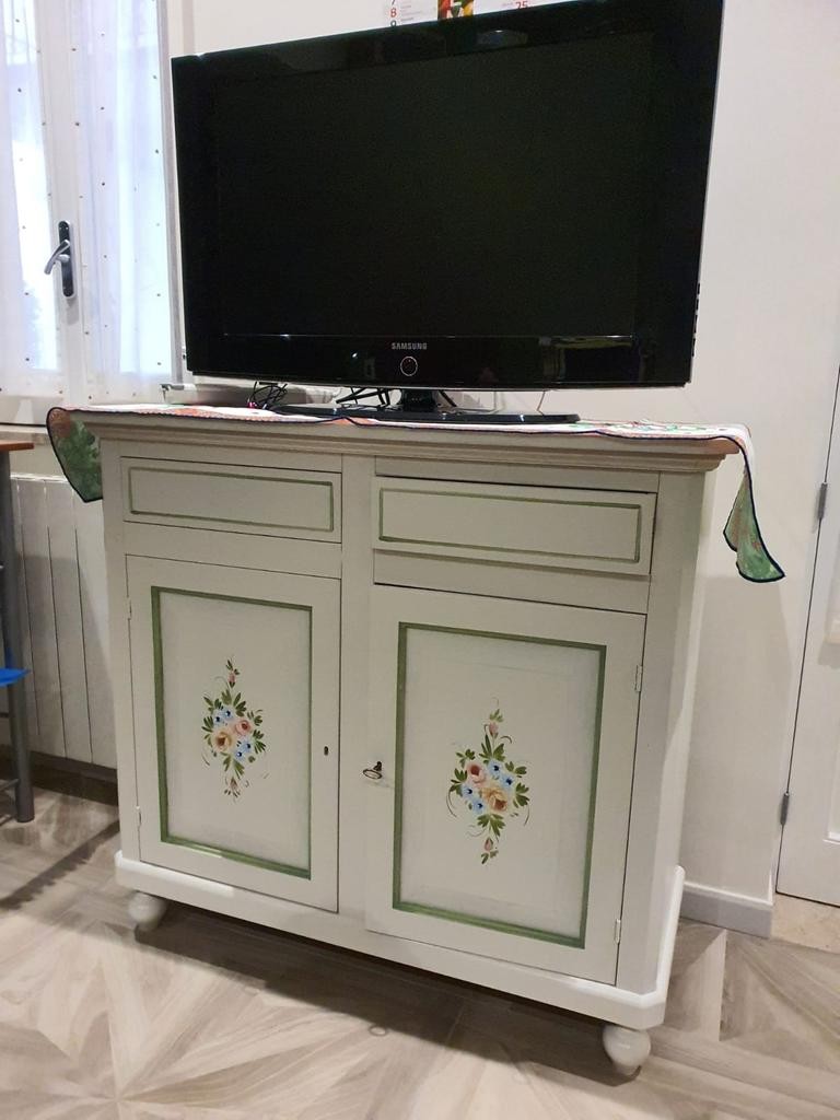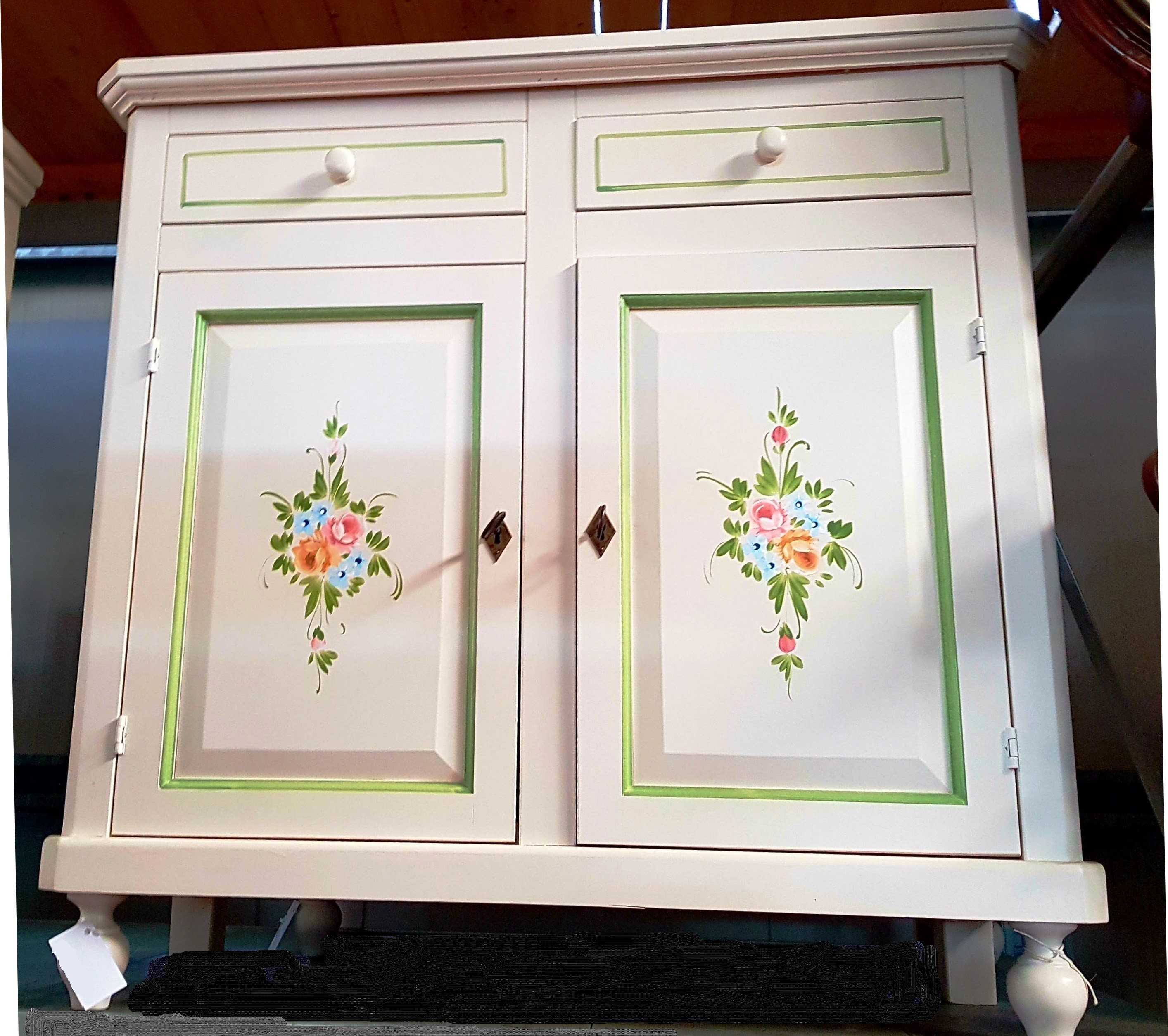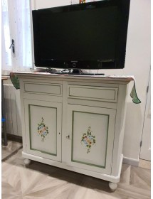Credenza napoletana 2 ante + 2 cassetti Laccata bianco decorato (CON FIORI E PROFILI VERDI)