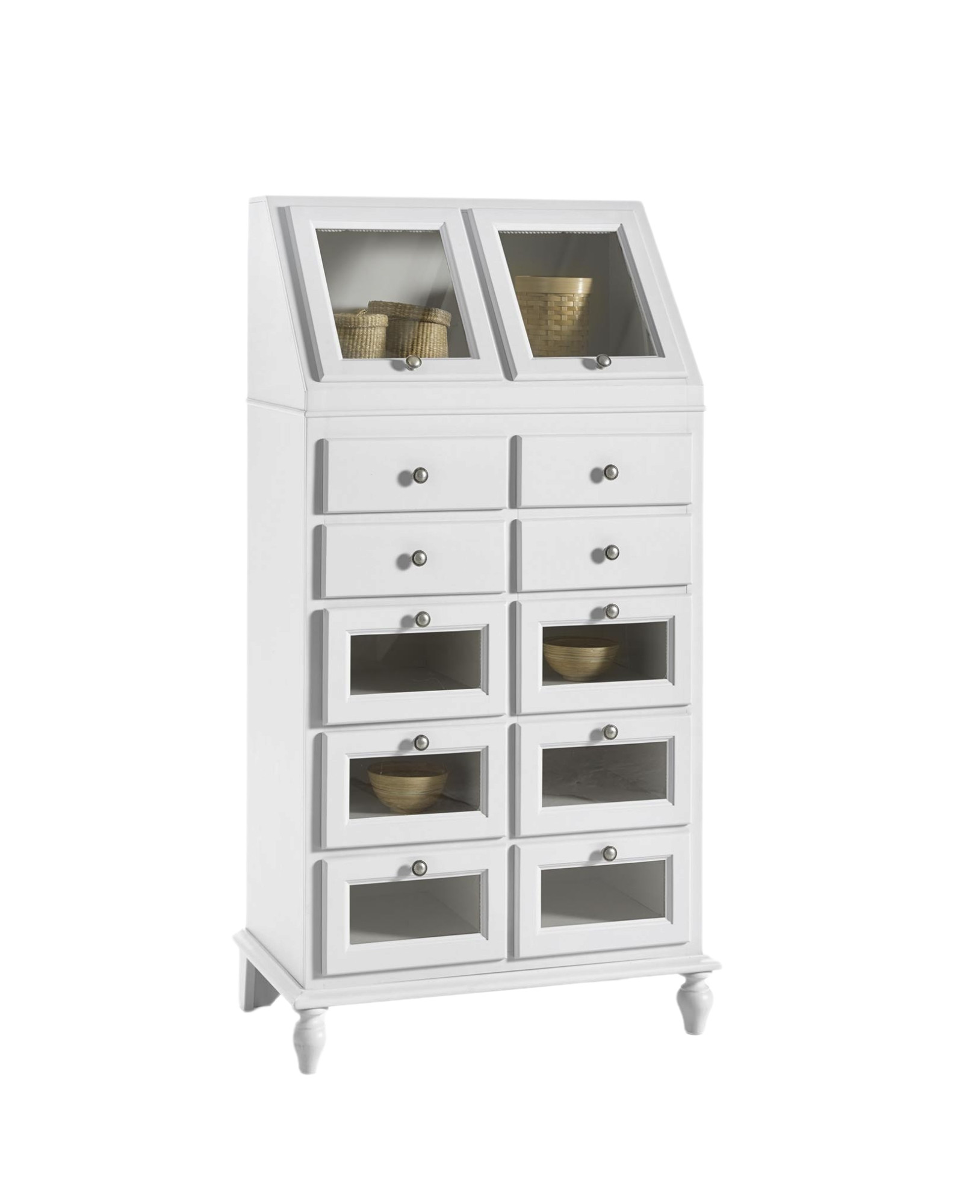 Dispensa da cucina con 10 cassetti e 2 ante a ribalta laccato bianco fumo