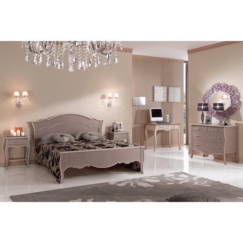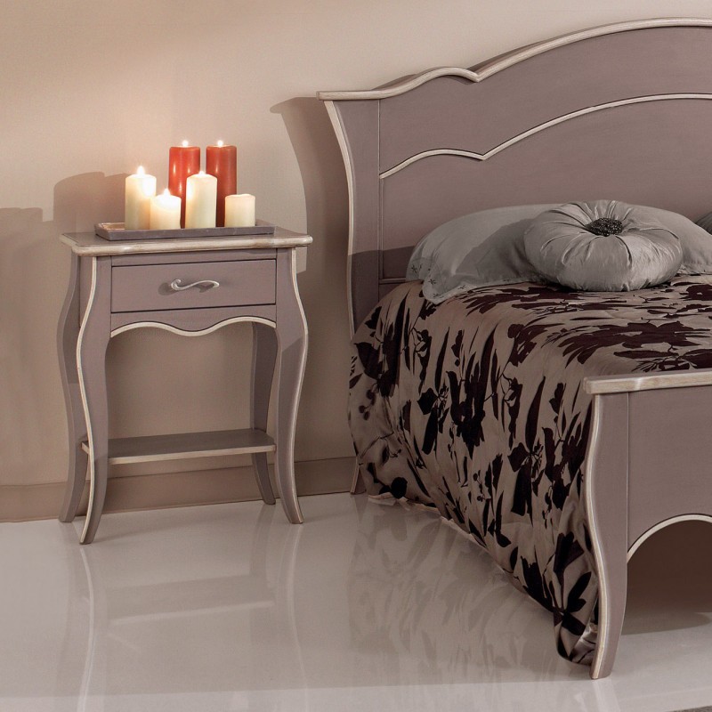 COMODINO 1 CASSETTO E 1 RIPIANO LACCATO TORTORA ANTICATO