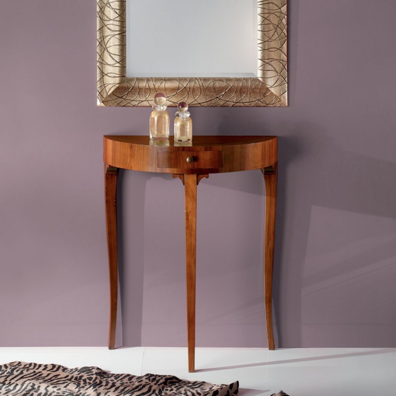 CONSOLLE IN LEGNO 1 CASSETTO TINTA NOCE CON INTARSIO L.66 P.32 H.80