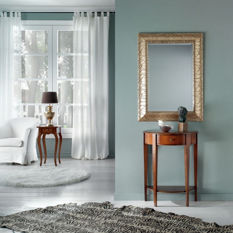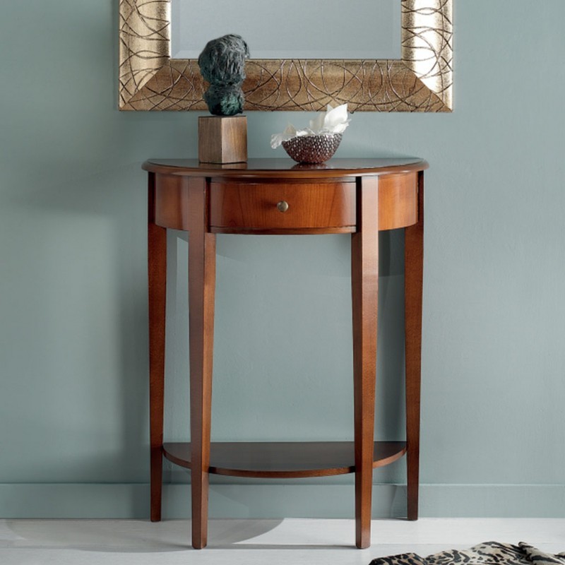 CONSOLLE IN LEGNO 1 CASSETTO TINTA NOCE CON INTARSIO L.62 P.32 H.77 (3117)