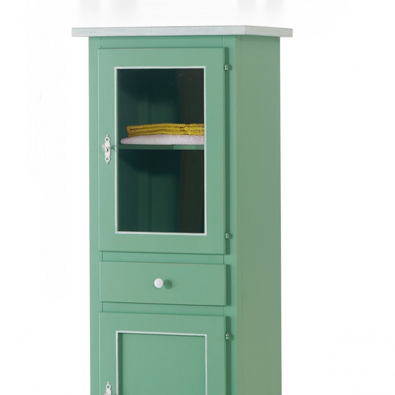 VETRINETTA 2 PORTE 1 CASSETTO LACCATO VERDE CON PROFILI BIANCHI MISURE L.54 P.45 H.150 (738)