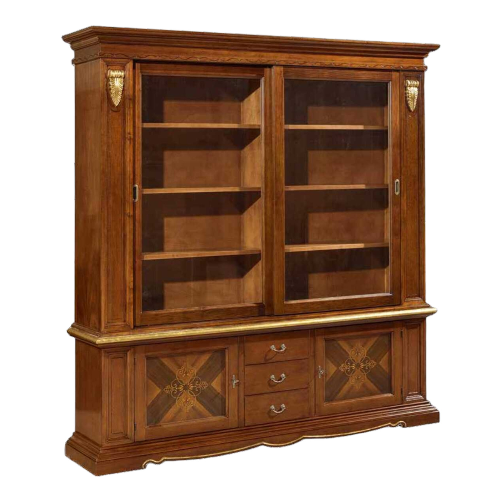 STRUTTURA DELLA LIBRERIA FINITURA BASSANO CON LE 2 PORTE BATTENTI CON INTARSI