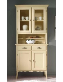 CRISTALLIERA 2 PORTE IN LEGNO SHABBY AVORIO L.98.P.51 H.213