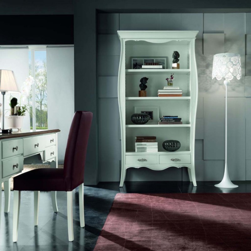 LIBRERIA CLASSICA IN LEGNO 2 CASSETTI BIANCO 106X47X204 (3099)