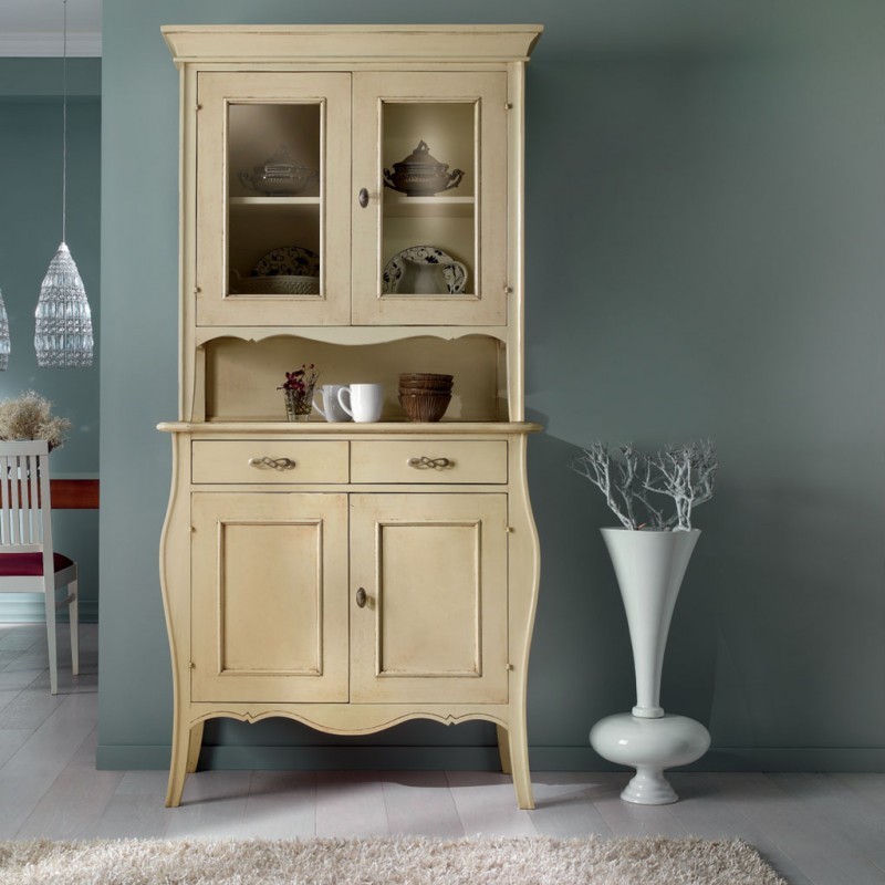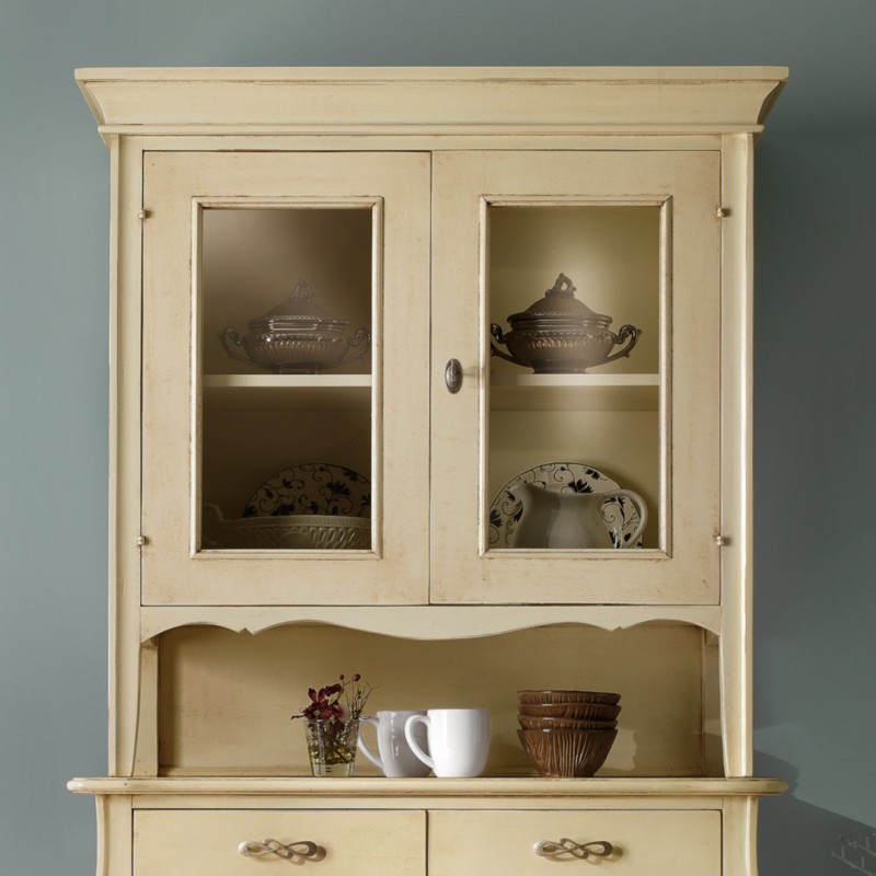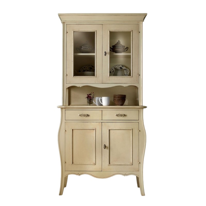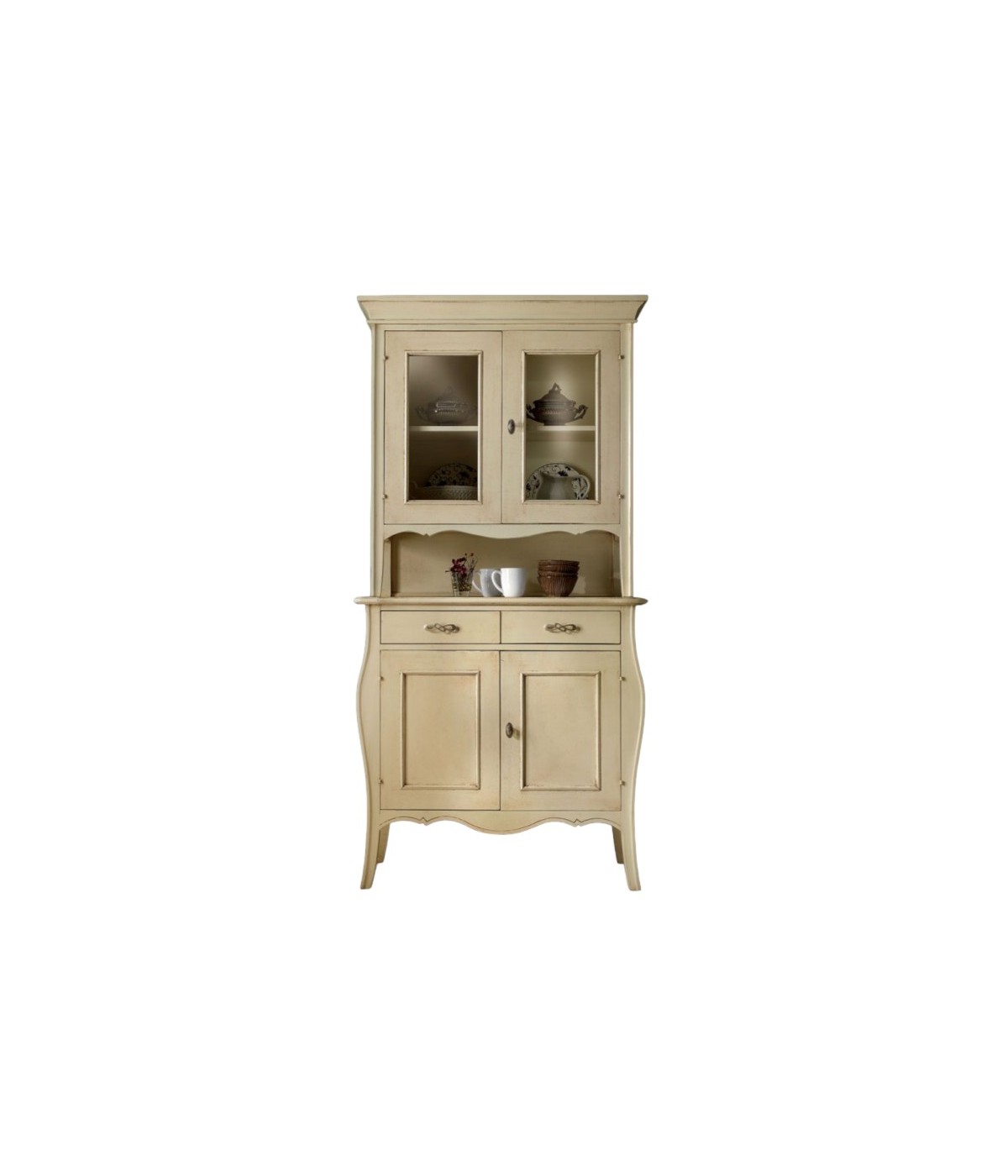 CRISTALLIERA 2 PORTE IN LEGNO LACCATO AVORIO PATINATO MISURE L.105.P.50 H.209