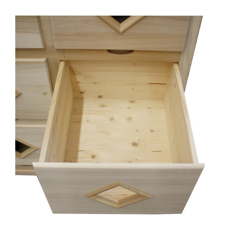 09 cassetti a becco di civetta con lavorazione del frontale del cassetto a rombo e con fresata per l'impugnatura sotto cassetto.(vedi foto)