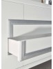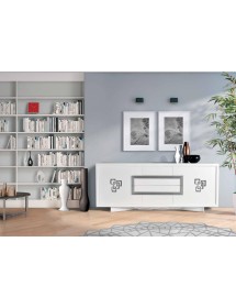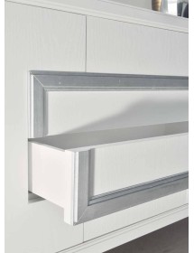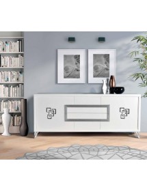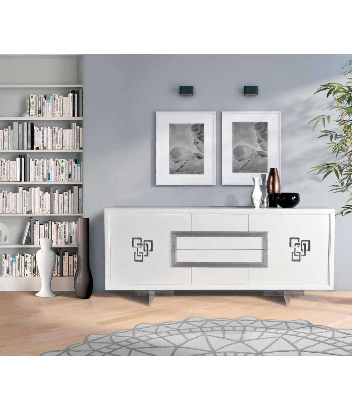 CREDENZA IN FRASSINO 2 PORTE LACCATO BIANCO PORO APERTO - ARGENTO PIEDI PLEXIGLASS L.210 P.50 H.90