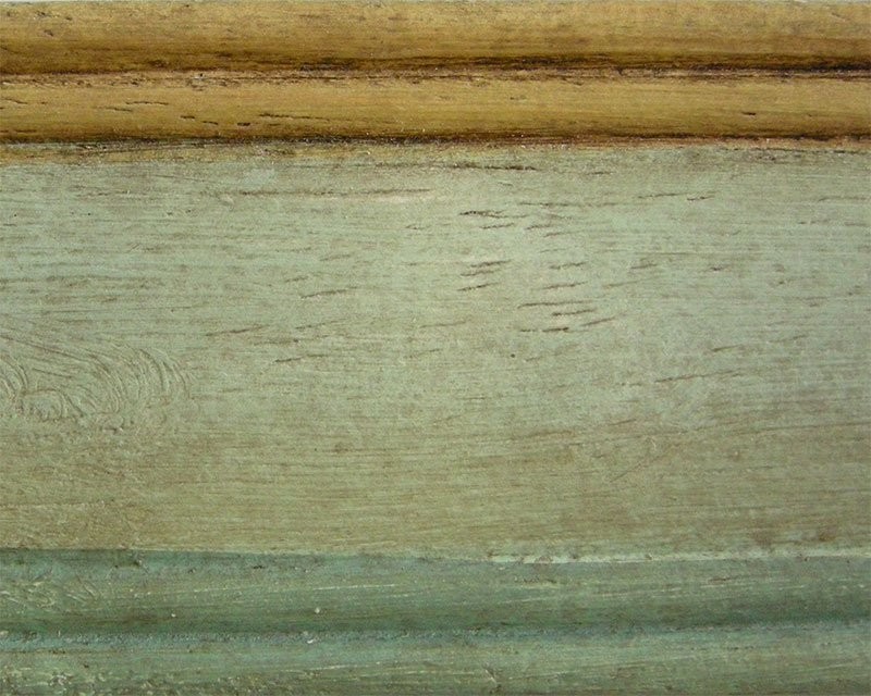 particolare laccatura artigianale con fondo colore verdino ed ornamenti colore ocra antico, anticati con particolari lavorazioni e patine. Cerati a mano.