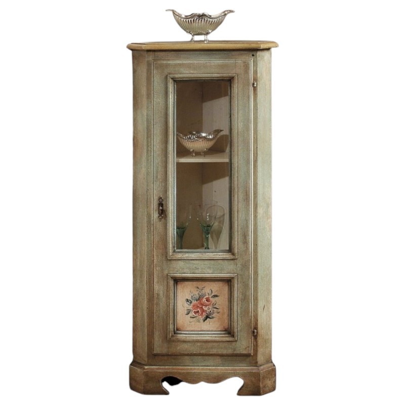 Mobile Angolo in legno 1 porta 3 ripiani arte povera laccato verde