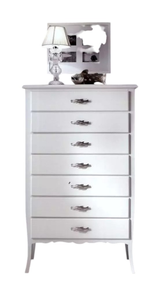 Cassettiera 7 cassetti in legno arte povera laccato bianco opaco L.85 x P.47 H.139 (3031)