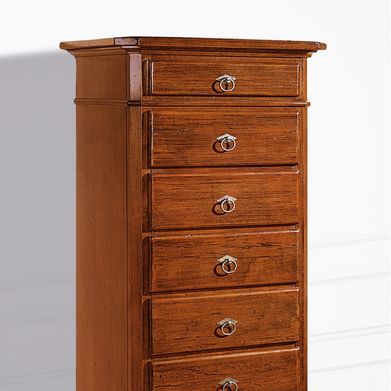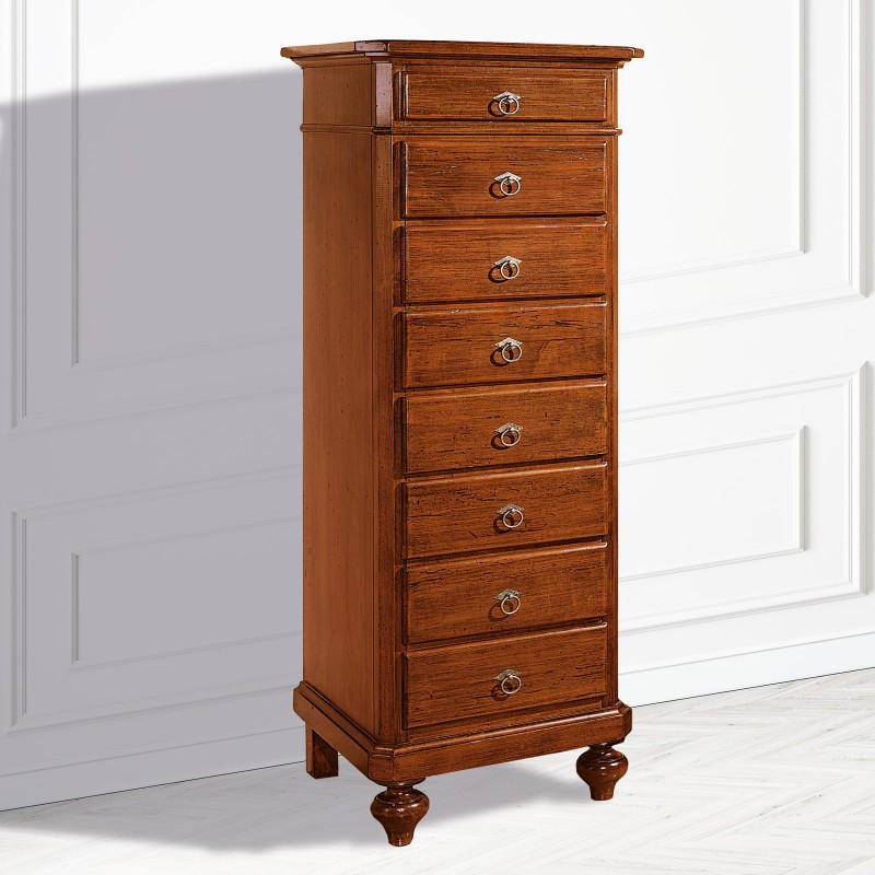 Cassettiera 8 cassetti in legno arte povera tinta noce L.55 x P.45 H.149 (707)